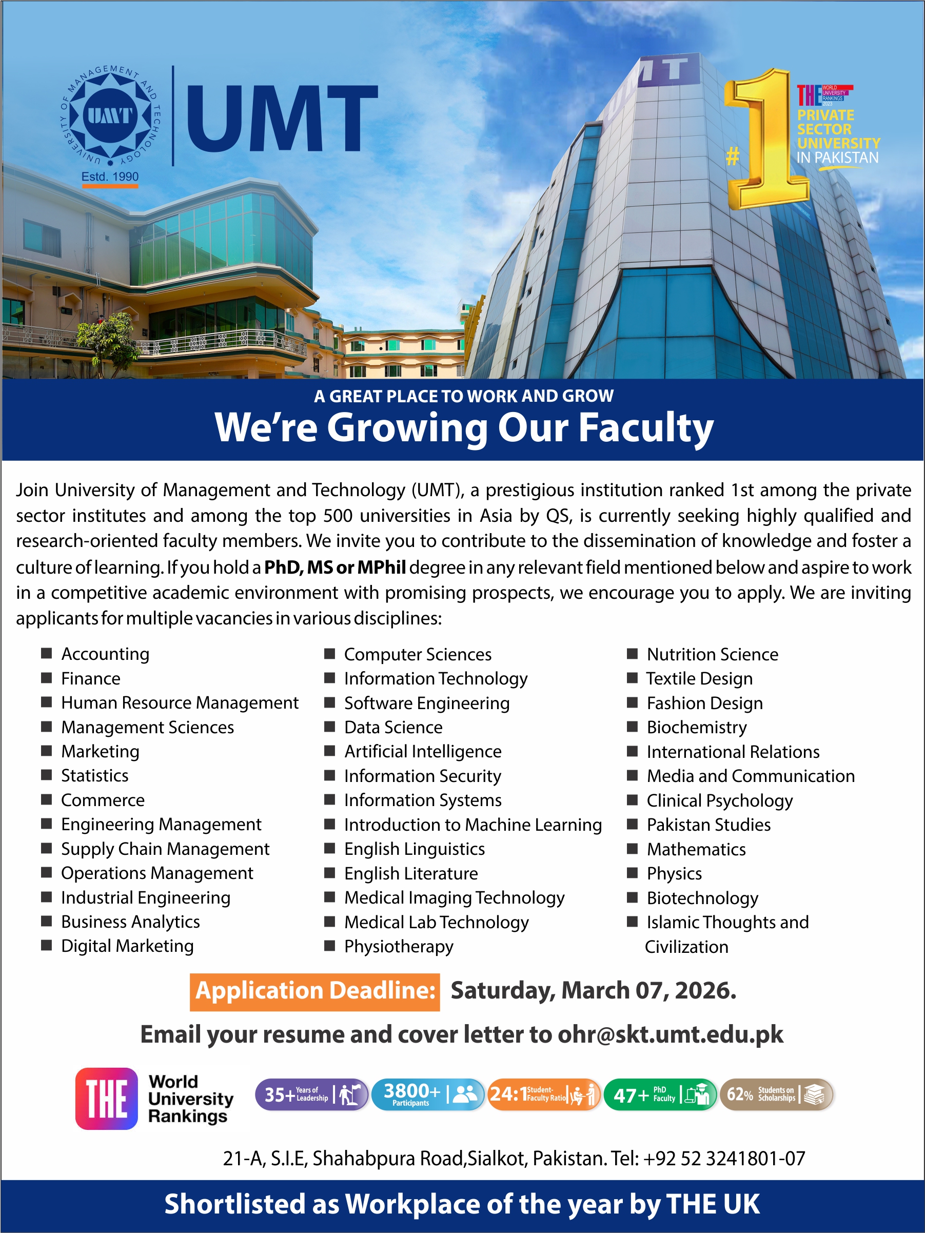 UMT Sialkot Campus at Glance
